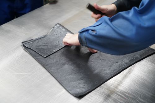シリコンカッターによるシリコンゴム裁断の様子