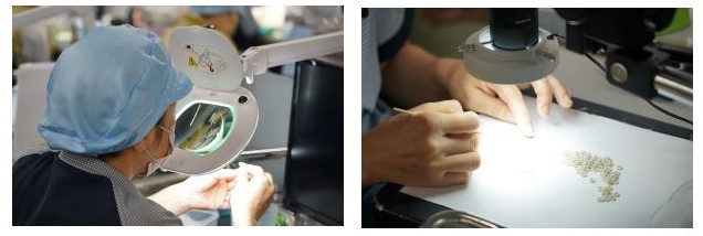 拡大鏡での検査の様子
