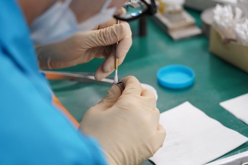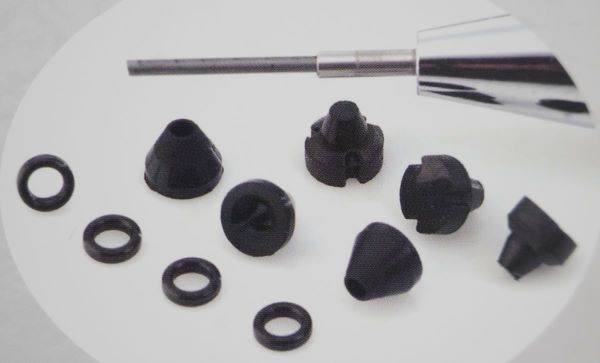 金具(インサート)にゴムを焼きつけ成型する場合、成型前の前準備として金具に接着剤を塗布します。
