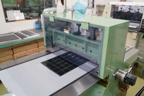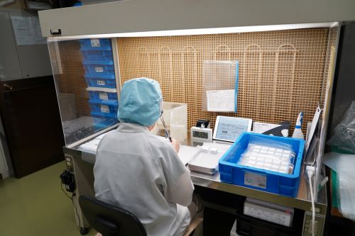 有色物のゴムを裁断する際は、クリーン作業着を着用し、埃や塵が付着しないようにクリーンブース内で裁断します。