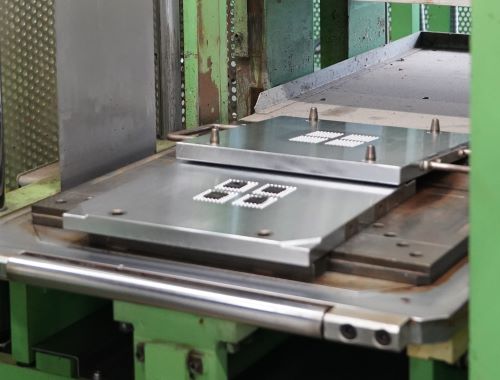 金具にゴムを焼き付ける場合は、金具も同時に並べます。