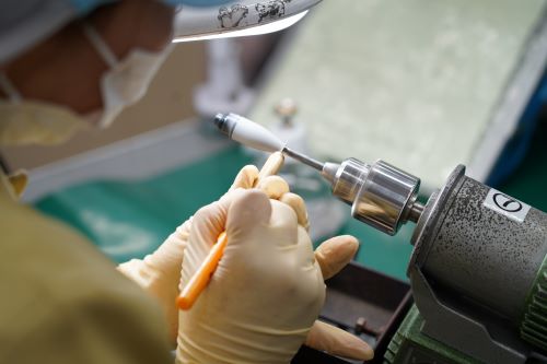 こちらも仕上作業の様子です。モーターで製品を回転させ、バリを削り取っています。